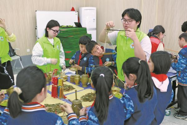 本次活动将非遗中医药知识与趣味实践相结合,为孩子们带来了一堂别开生面的健康科普课,助力青少年树立科学健康的生活观念。(励彤 董二毓 沈莉萍 摄)