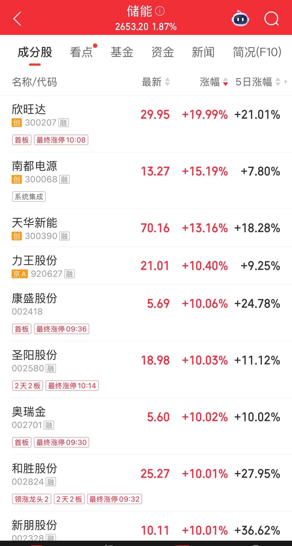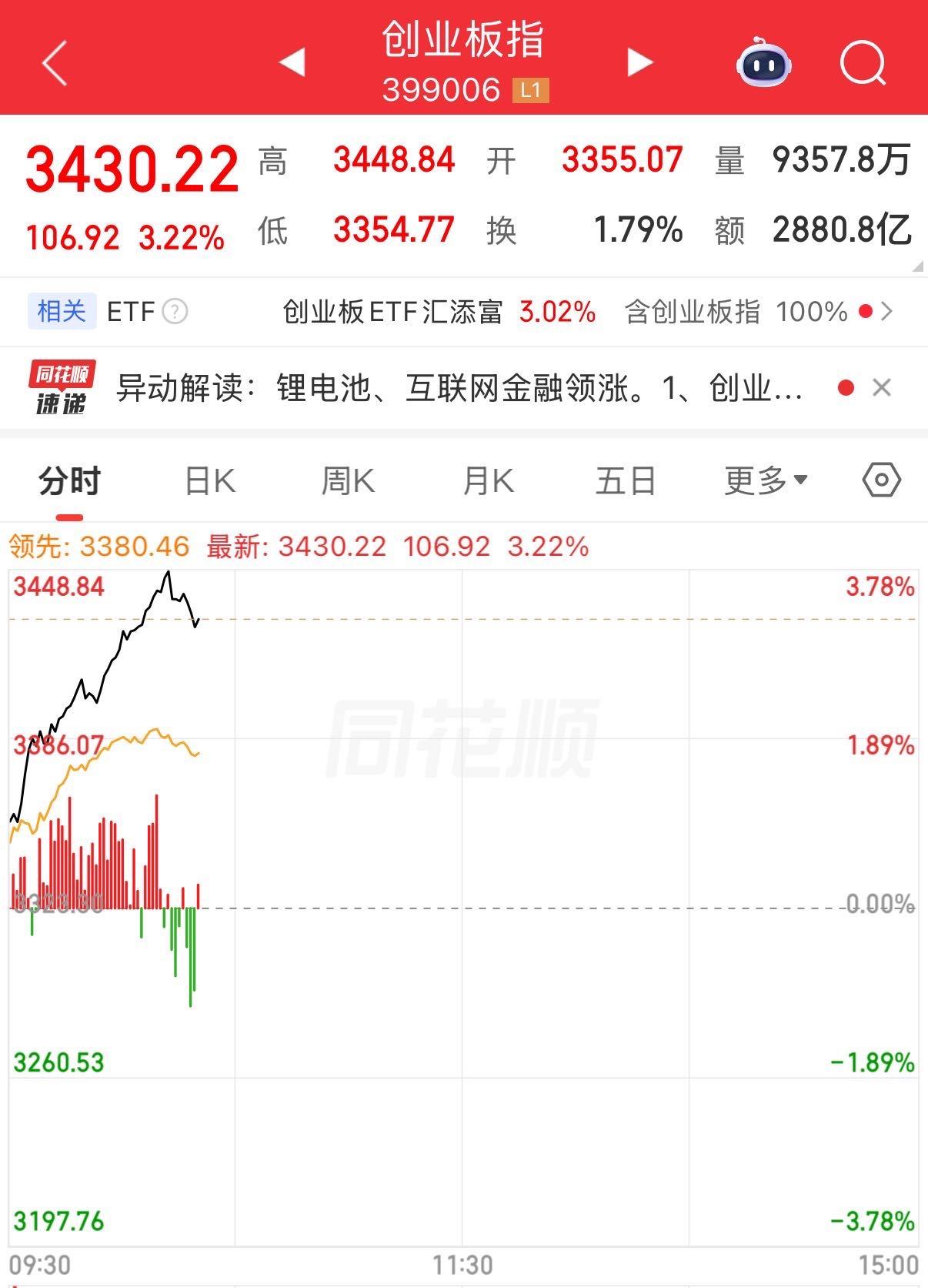 盘面上,储能、证券板块领涨。
