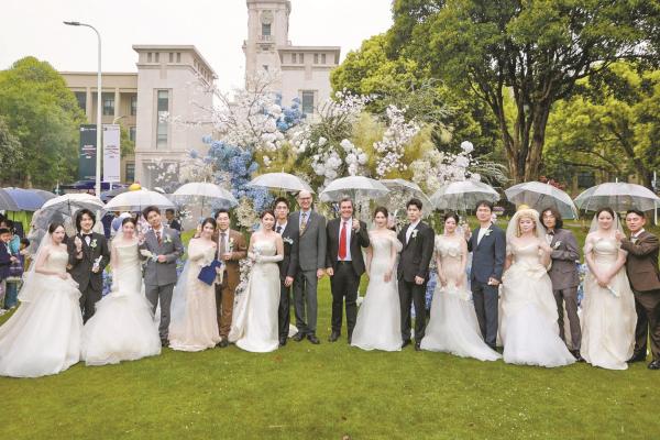 宁波诺丁汉大学发展和校友关系办公室主任、校友总会秘书长何蕾表示,集体婚礼的创意源于校友的真实需求。对于很多校友来说,人生的重要时刻,最想回到最熟悉、最有归属感的地方——母校,与同窗一起见证。学校始终坚持开放包容的原则,让每一对与宁诺有缘分的校友眷侣都有机会参与。据悉,自2017年宁诺校友总会成立10周年至今,学校先后于2017年、2021年、2026年举办了三届校友集体婚礼,共为24对校友新人在母校举行仪式。