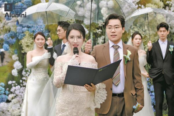 4月11日,宁波诺丁汉大学迎来一场特别的集体婚礼。8对校友新人重回母校,在熟悉的校园里许下相守一生的誓言。从同窗到伴侣,这场婚礼满是回忆与爱意,也让母校见证了他们最美好的爱情。