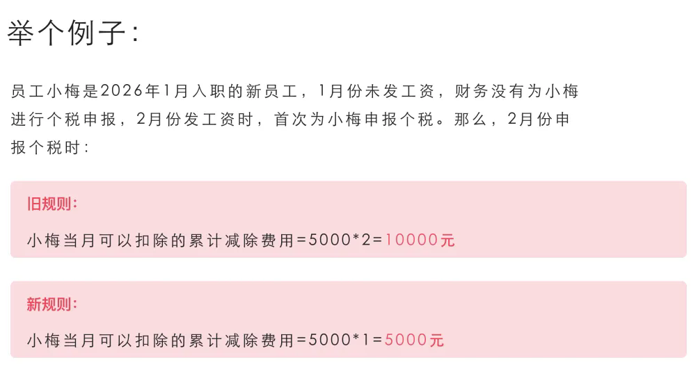 ◆ 旧规则:按入职月份自动累计减除费用,未申报也不作废。