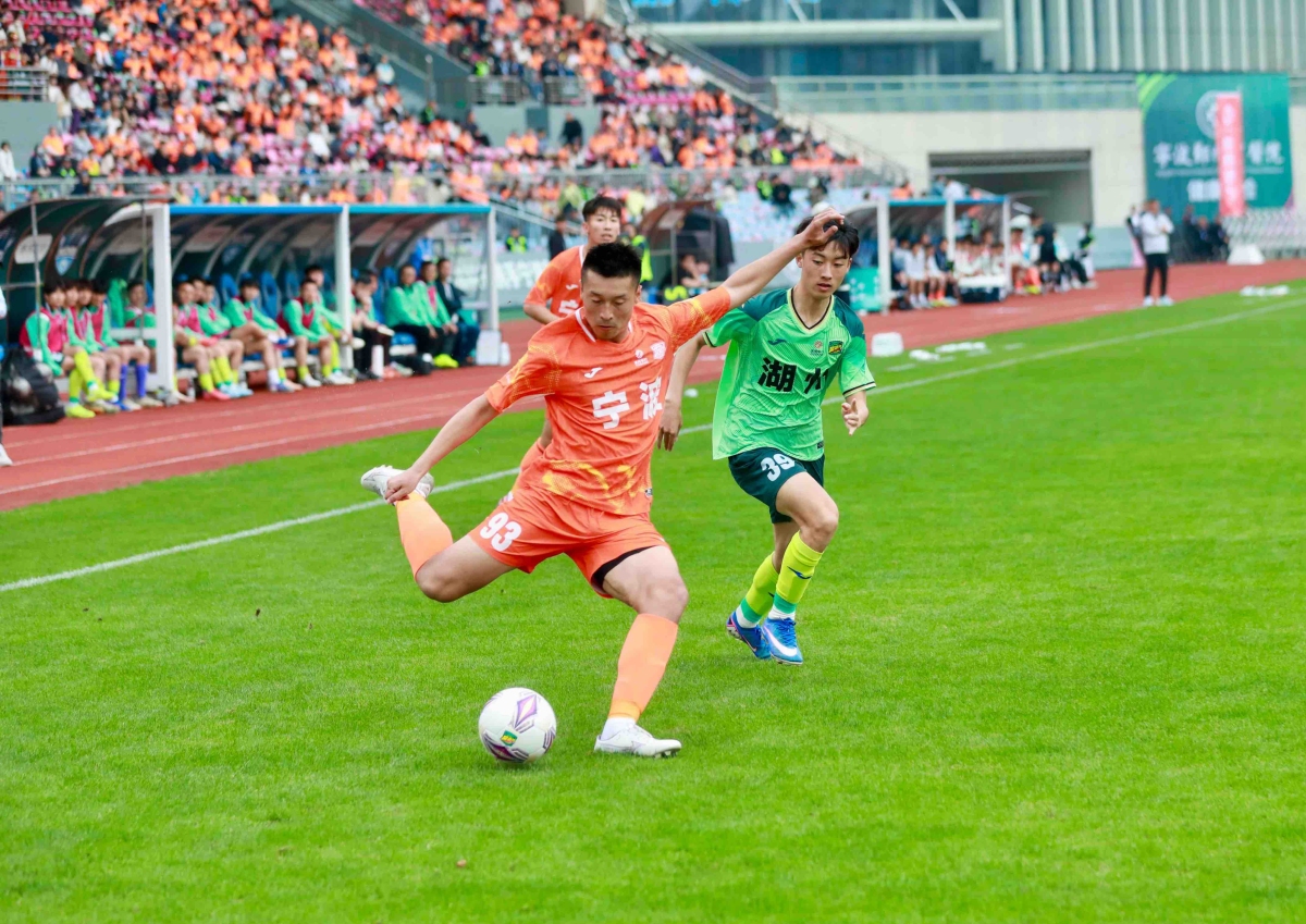 4月12日,2026年浙江省城市足球联赛(“吴越杯”)在宁波迎来第二轮的一场较量,在9290名球迷汇聚的“橙色海洋”中,宁波队主场3:1力克湖州队。