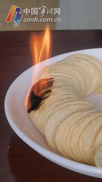 薯片极其易燃,接触明火瞬间就能被引燃