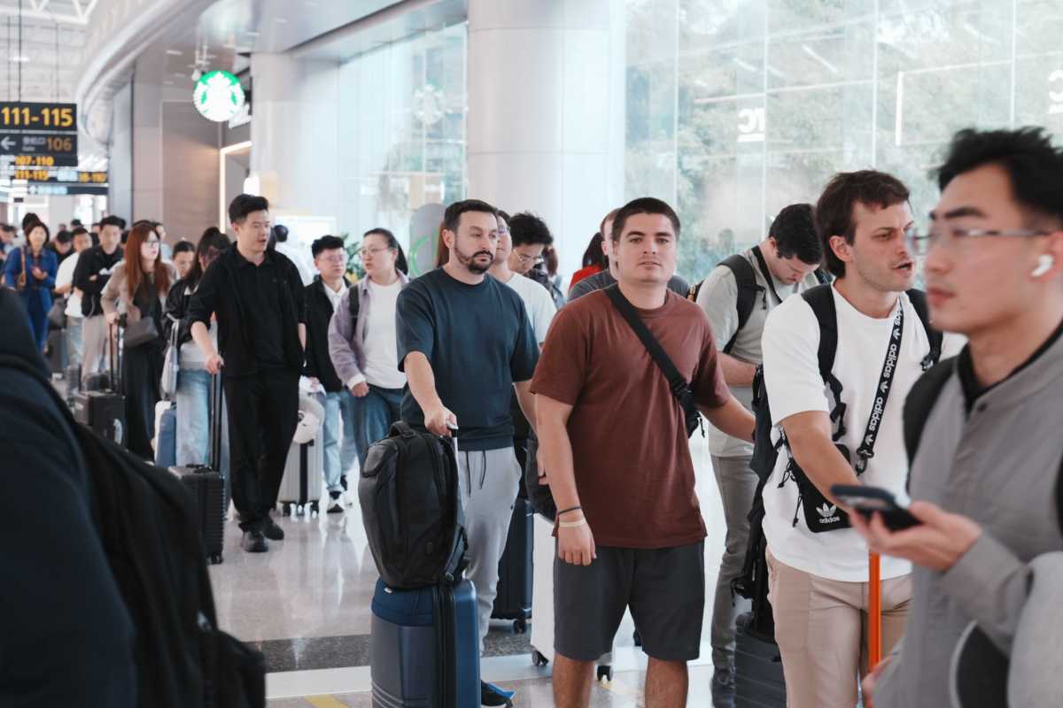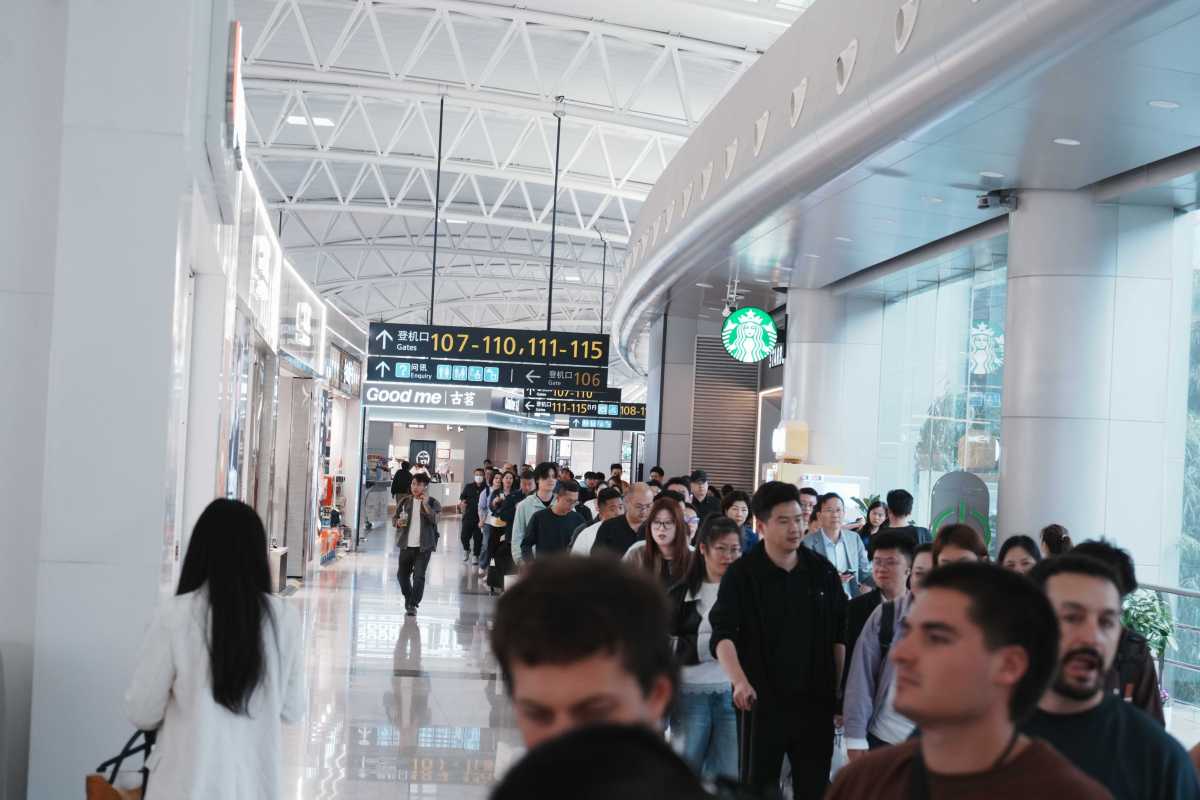 机场登机口乘客们排队等候。本文图片除标注外均由卢昕炎摄