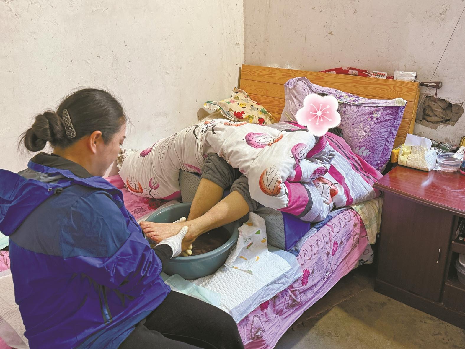 应海莲正在护理老人。记者林桦/摄