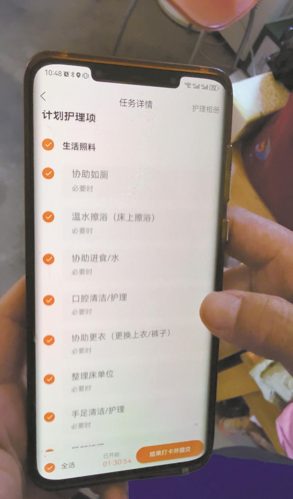 每个护理员都需要打卡护理项。记者林桦/摄