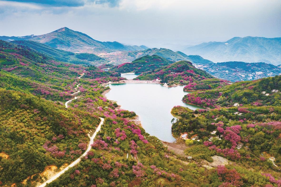 当城市里的早樱已化作春泥,余姚市四明山镇芦田村海拔近800米的高山上,万株粉色晚樱正毫无保留地铺满山谷,倒映在碧蓝如镜的“宁波天池”水面,美得让人屏住呼吸。更令人期待的是,从本周后半周起,四明山区将迎来一段持续晴好天气,天池樱花、高山杜鹃和沿线公路花带同步进入一年中最绚烂的“封神时刻”,错过真要再等一年!