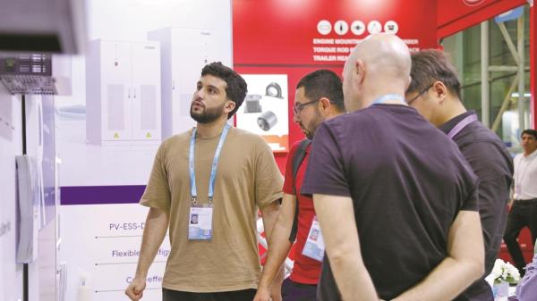 外商在东方日升展位了解光储设备。通讯员 陈俊 供图