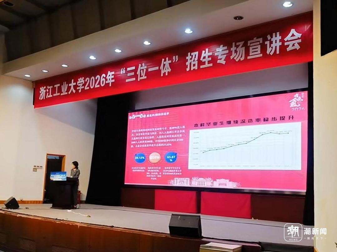 浙工大在朝晖校区存中楼报告厅,安排了多场校情宣讲滚动进行,让家长们能够更近距离认识学校、了解招生政策、感受办学成果。家长们还可以游逛校园,参观中国大写意花鸟画研究院和能源与碳中和科教融合学院能源科教创新中心。