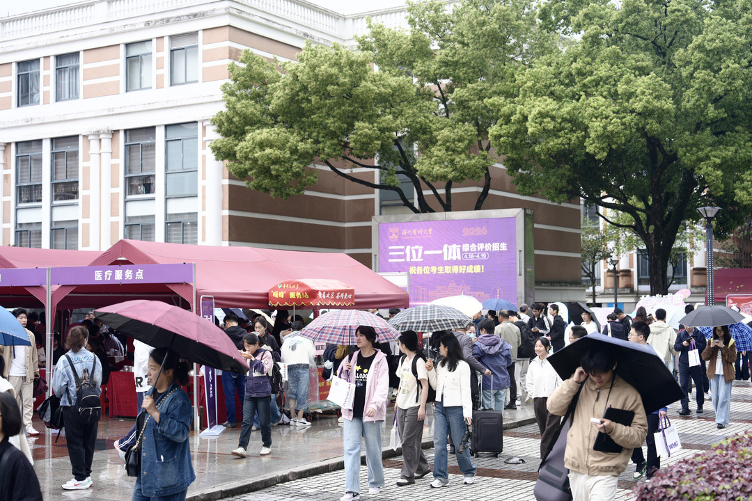 在温州医科大学,来自苍南中学的考生温雅歌用三个词形容对校园的第一印象:“踏实、亲和、包容”。她说,学医本身就需要长时间积淀,温医大体现了医学严谨踏实的作风,而校园体验和志愿者接触又让她感到亲和放心。