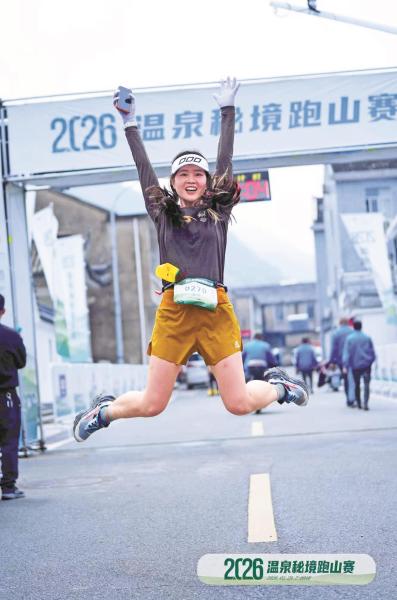 来自上海的王女士参加今年的宁海温泉秘境跑山赛。(受访者供图)