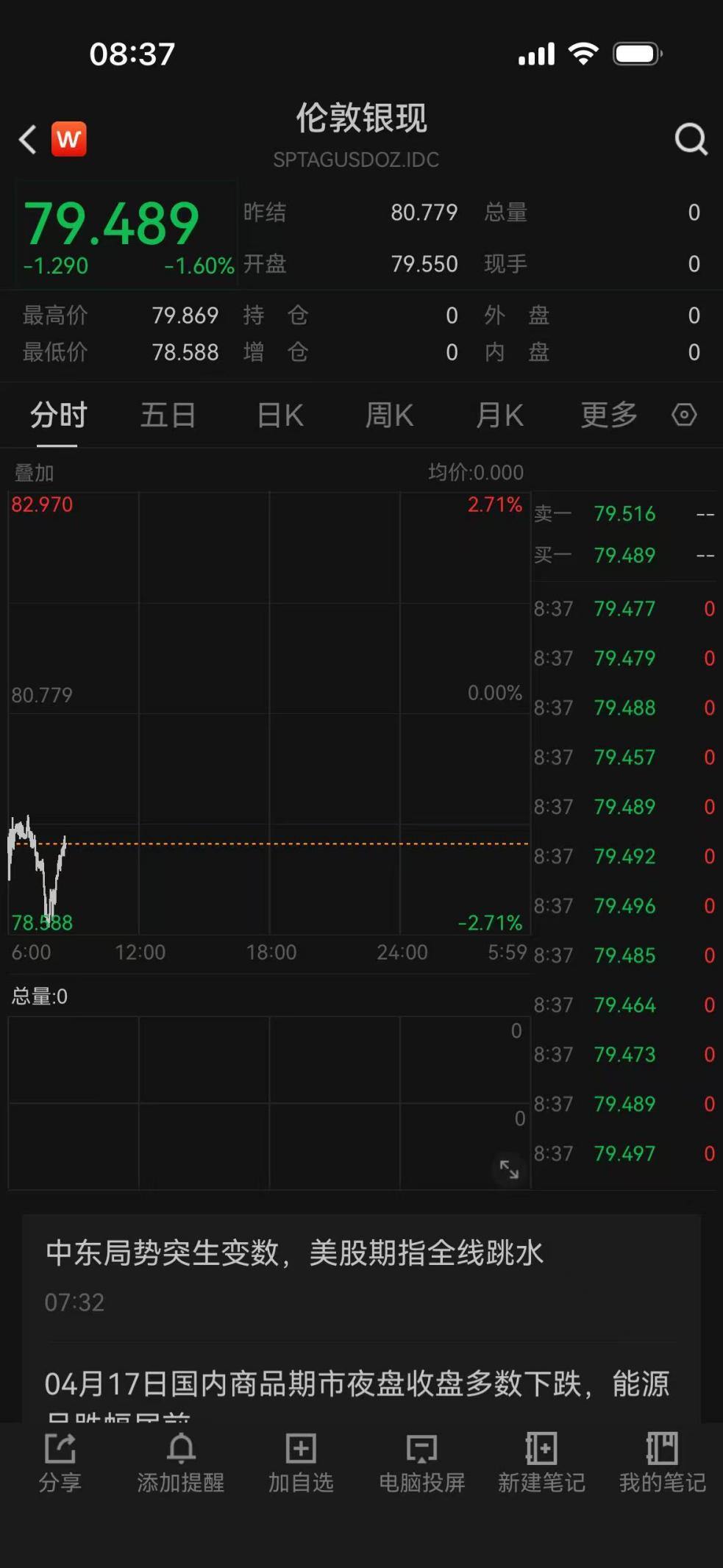 现货白银同样下跌达1.6%,目前跌破80美元/盎司。