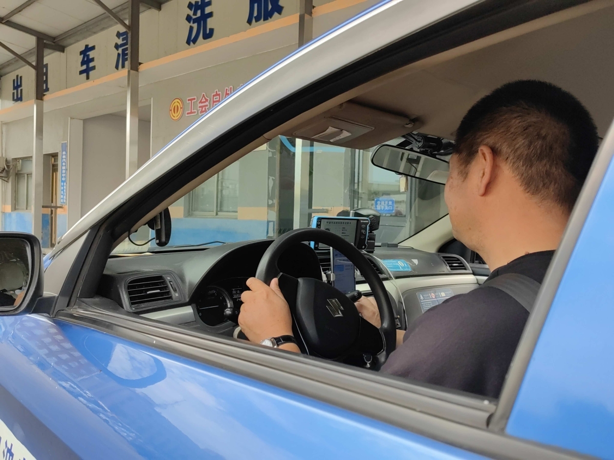 出租车司机正在登陆网约车接单平台。林昱辰/摄