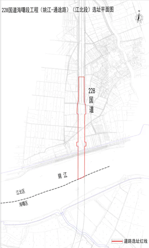 228国道海曙段工程(姚江-通途路)北段区位图和选址平面图如下: