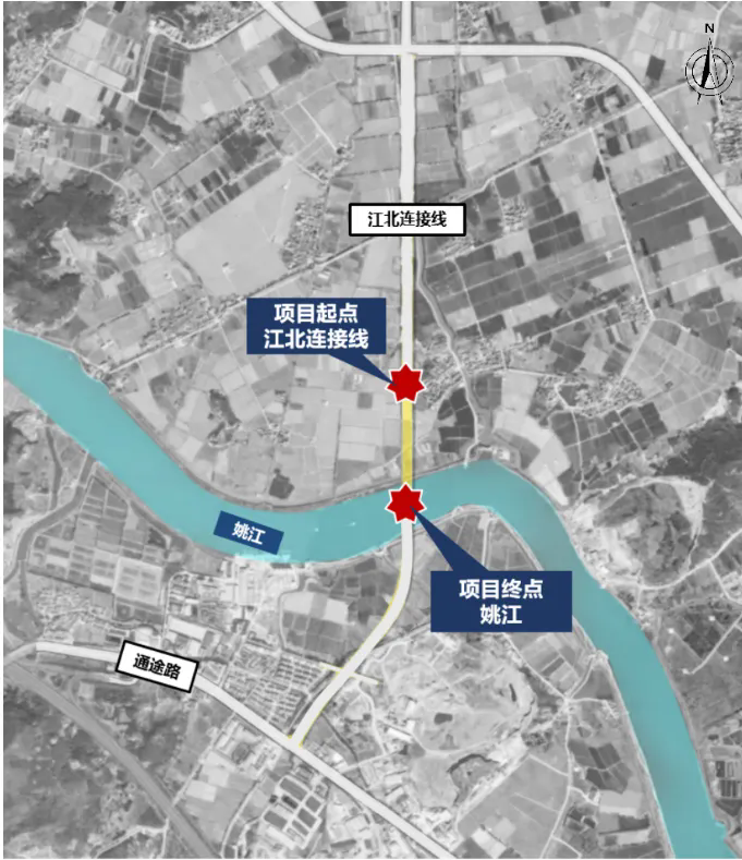 据资规部门和交通部门2024年披露的信息,该工程所含跨姚江桥梁,将是一座南北走向的跨江特大桥。