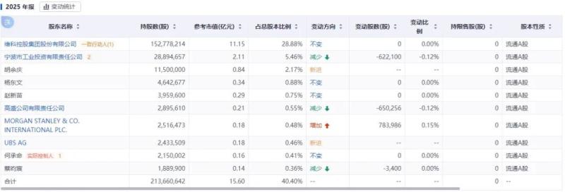 与此同时,值得一提的是,知名投资机构摩根士丹利旗下子公司则在2025年度第四季度选择了增持,持股比例上升0.15%;UBS AG即瑞银集团新晋为第八大股东,持股比例占总股本的0.46%。