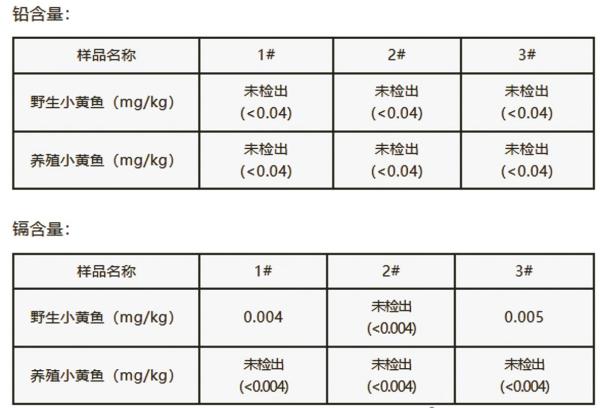 本次实验样本中,养殖与野生小黄鱼的铅、镉元素均为未检出或检出含量极低,整体安全指标表现良好。日常生活中,不少消费者认为野生鱼类受污染更少,该认知存在一定片面性。实际上,只要养殖鱼类生长环境标准化管控、养殖过程管理规范,也能够有效降低自然海域不确定因素带来的污染隐患,在食用安全层面同样具备相应优势。