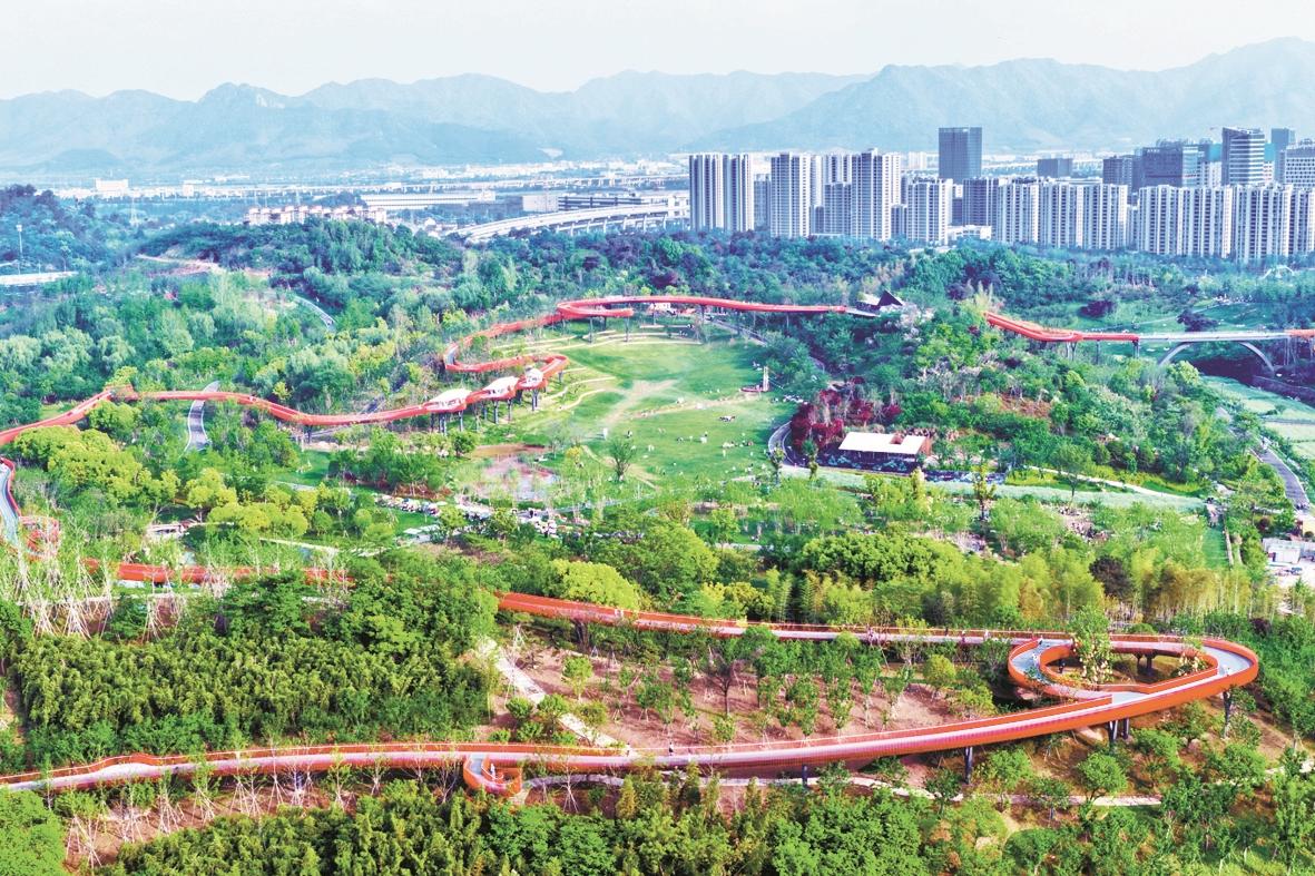 近段时间,位于奉化主城区北部的茗山公园景色宜人,一周客流量超过8万人次。该公园拥有127万平方米生态绿地,栽种了樱花、红梅、粉黛乱子草等70多种植物,建有一条长约3.9公里的钢结构架空栈道。站在高处放眼望去,这条栈道犹如橙色丝带,在山野间蜿蜒伸展,将周边的花草树木及其他景观设施“串珠成链”,形成一道亮丽的风景线。(宁波日报 甬派客户端 陈章升 樊建威 景士杰 摄)