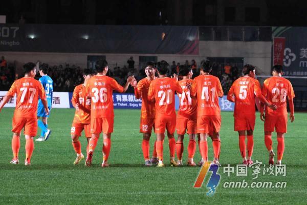 宁波队员庆祝进球。