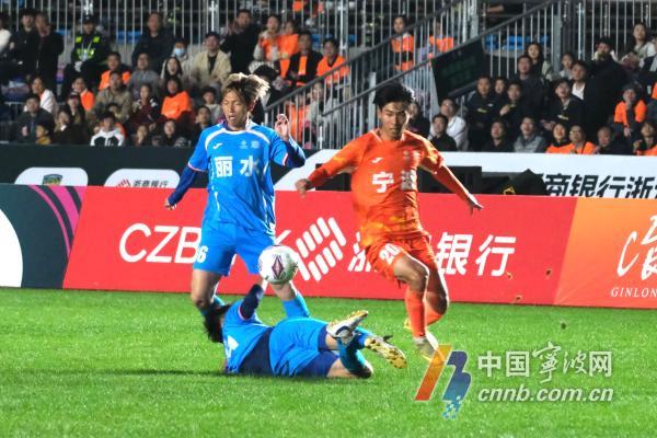 之后,清一色“00后”球员出战的丽水队倾力而上,利用体能优势发动猛攻,也获得了几次得分良机。第73分钟,他们的不懈努力也终于收获了回报,在丽水队的一次进攻中,皮球打在宁波队员身上,折射弹入宁波队的球门,比分改写为1:3。
