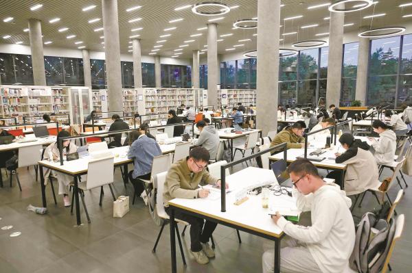 4月23日是世界读书日。当晚,宁波图书馆福庆馆内灯火通明,耳边不时响起翻动书页和笔尖划过纸张的沙沙声。不同年龄、不同身份的读者在这里因书结缘,共同构成了一幅“挑灯夜读图”。“书香宁波”深入人心,阅读早已融入日常,这是一座城市对阅读的尊重与热爱。(宁波日报 甬派客户端 陈结生/摄)