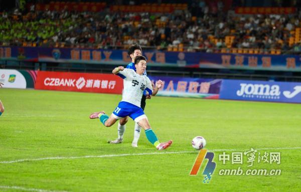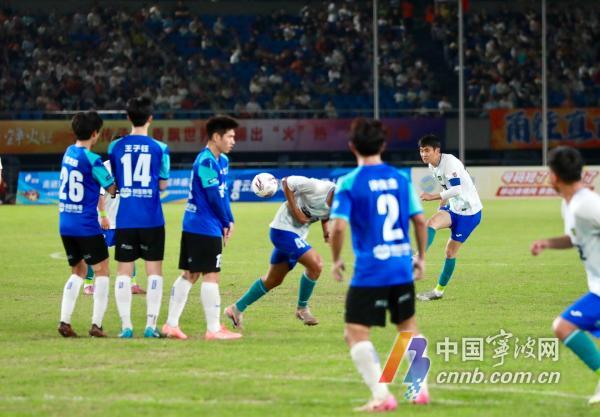 第24分钟,宁波队获得任意球机会,队长潘昊操刀主罚,不过被对手门将扑出,未能打破场上僵局。