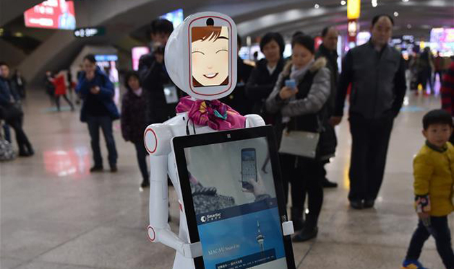 智能机器人亮相广州南站